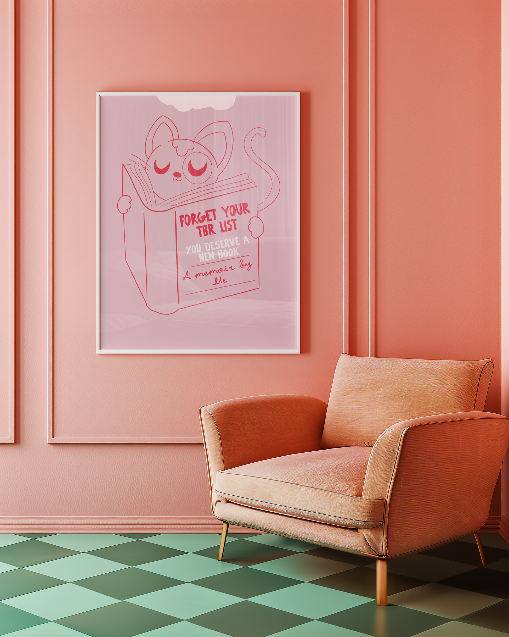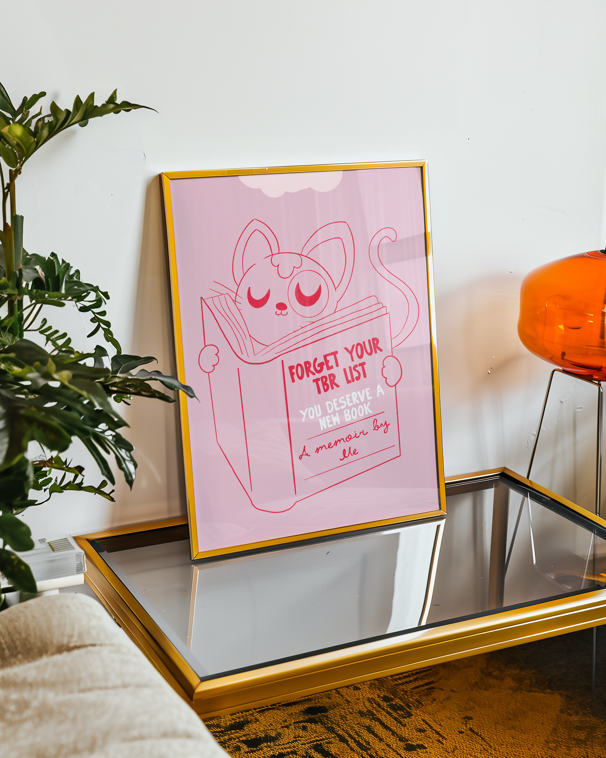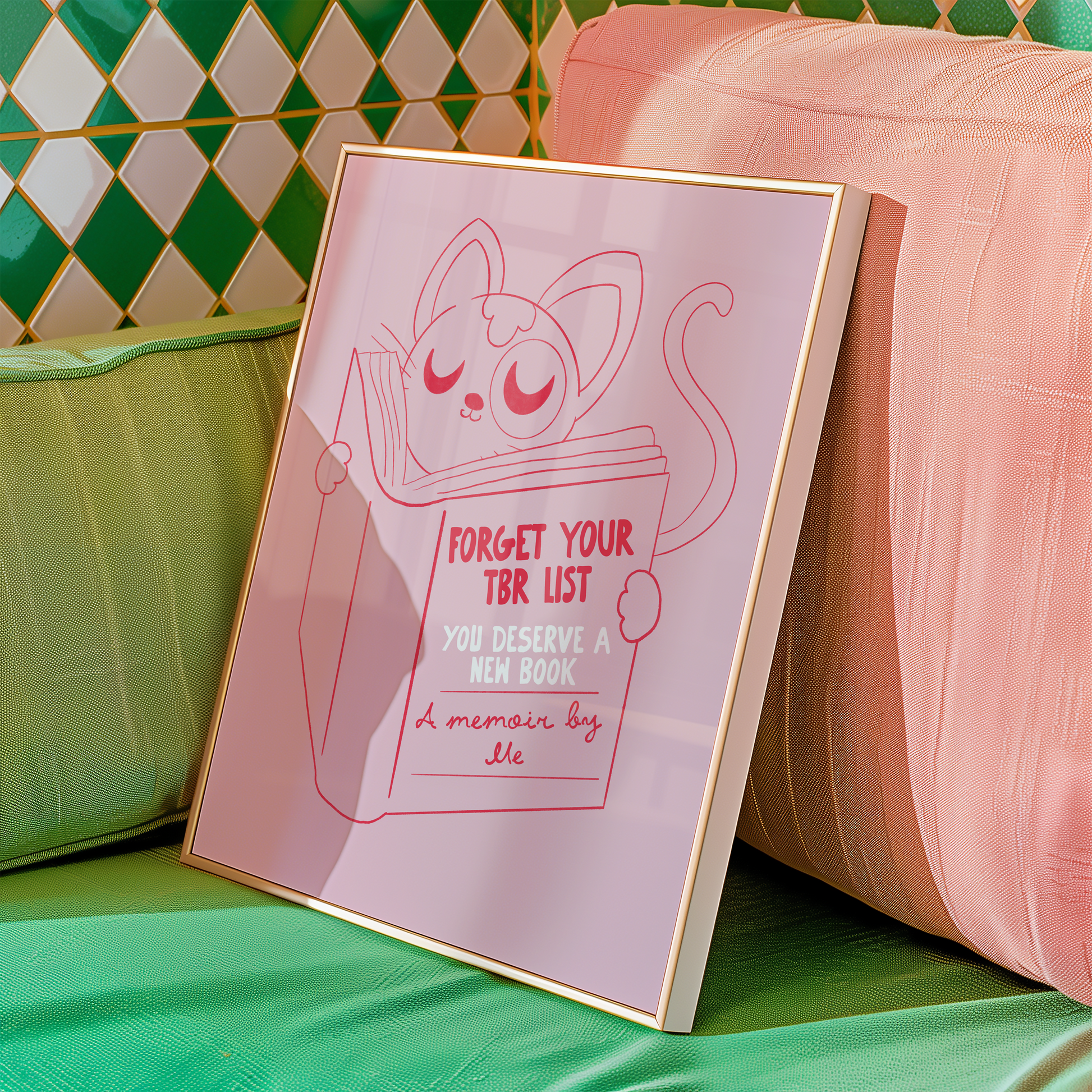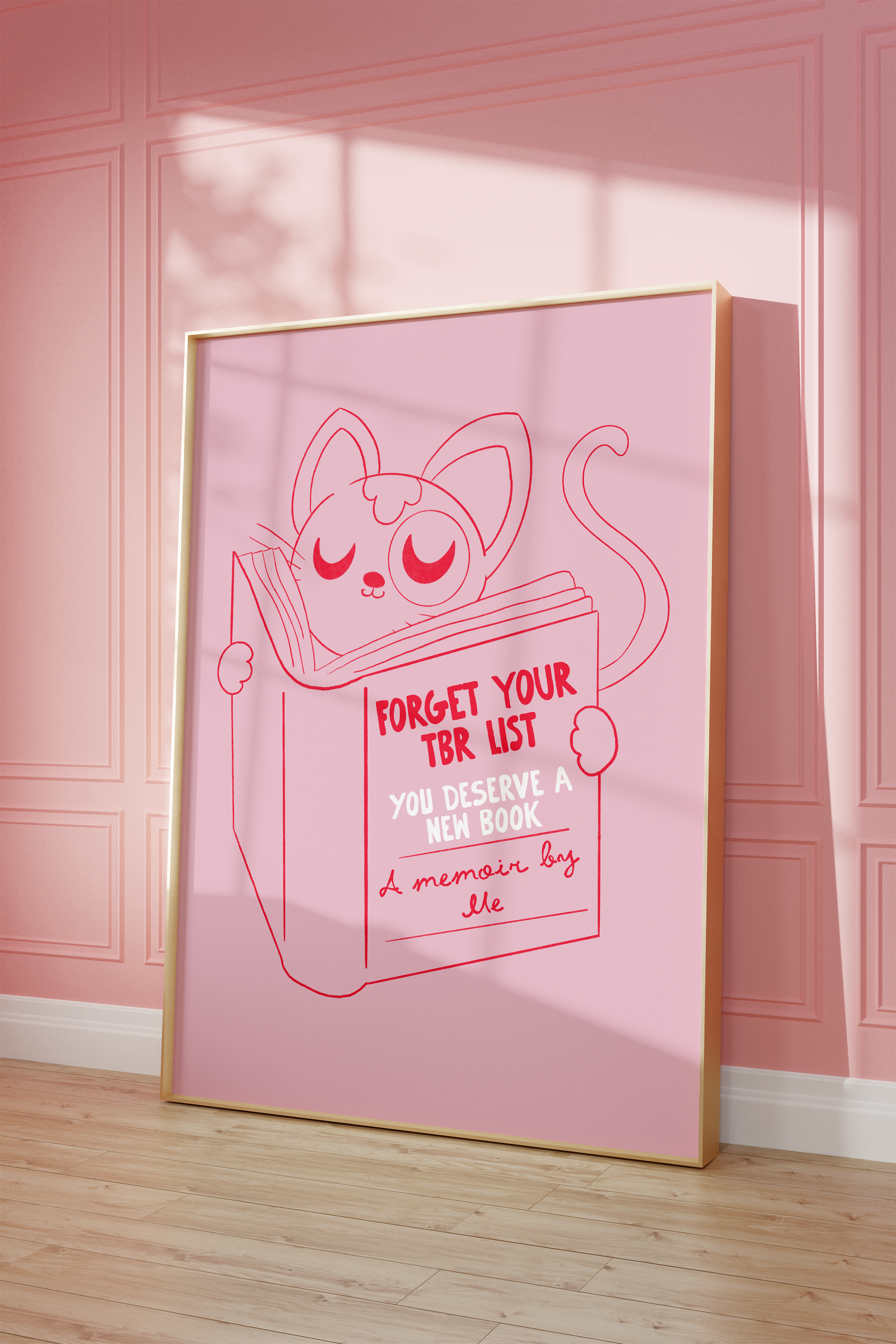 Kawaii Cat Art Print – Funny Book Lover Quote Wall Art | “Forget Your TBR List” Poster by Little Bū Studios