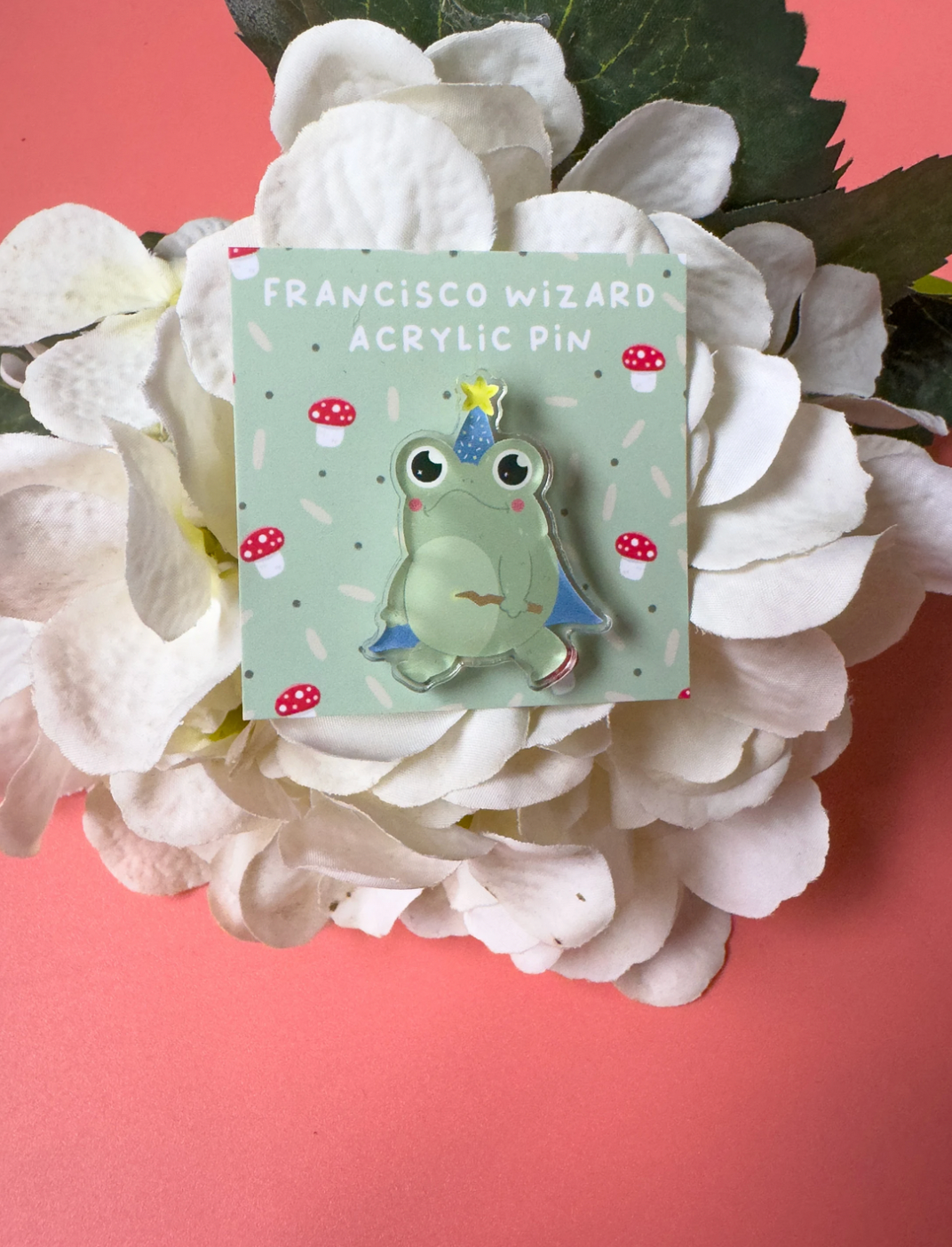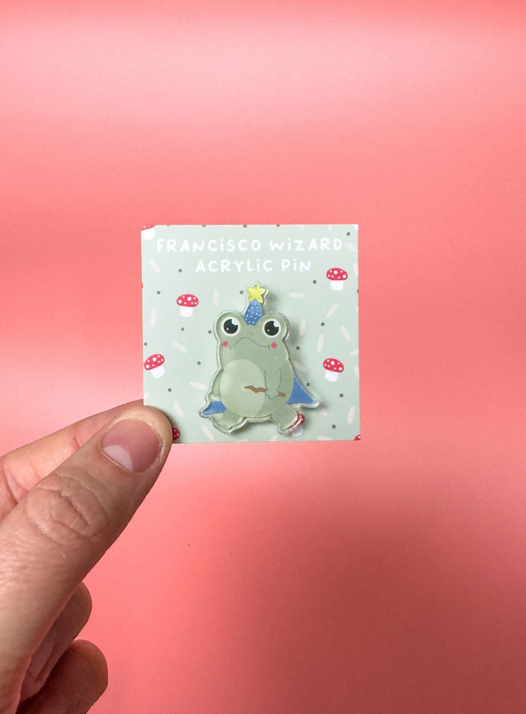 Little Bu Acrylic Pin - "Francisco The Frog" | Cute Kawaii Animal Enamel Pin | Magical Frog Lapel Pin