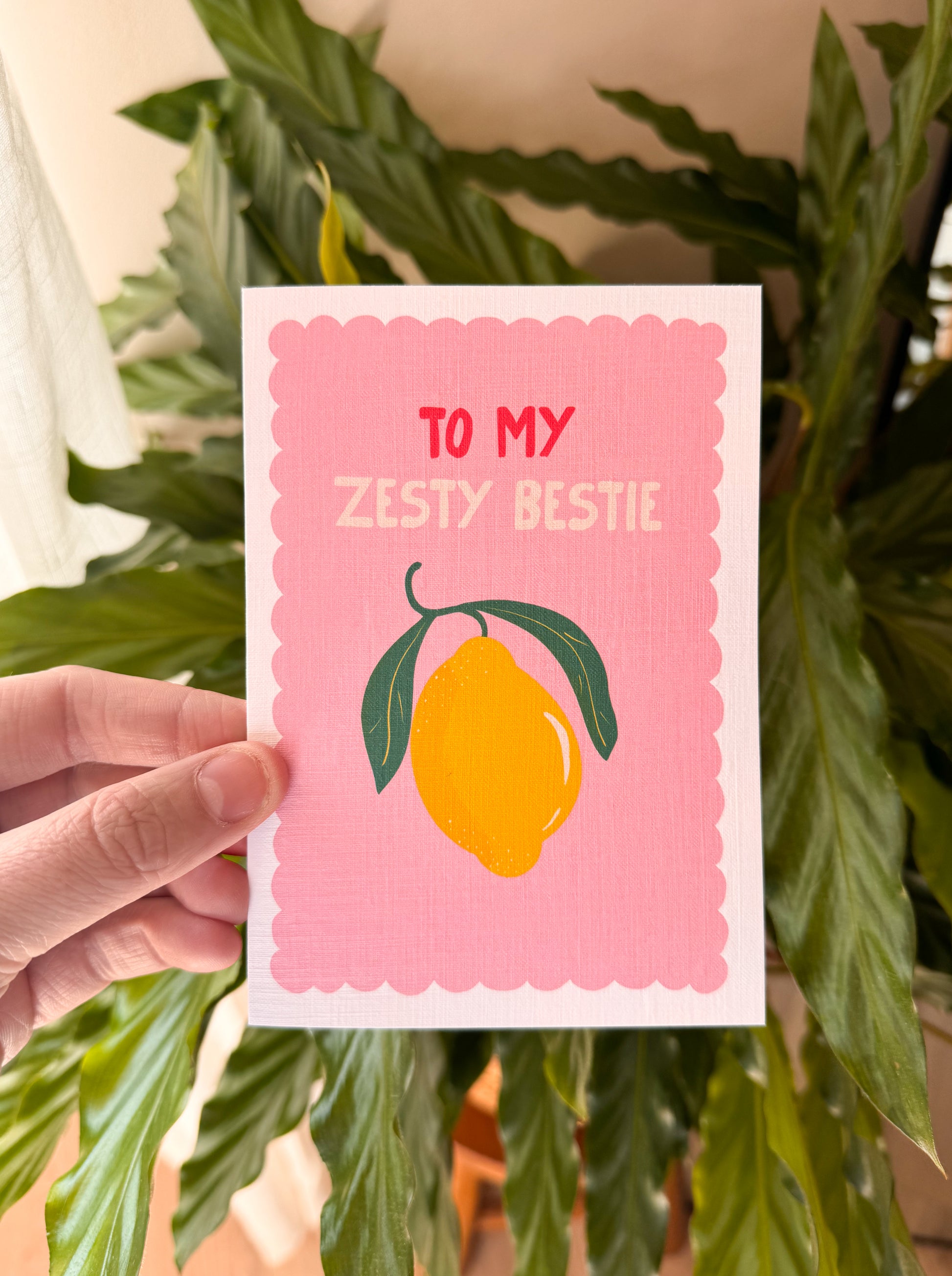 "Zesty Bestie" | Lemon Best Friend Card | Cute Friendship Card